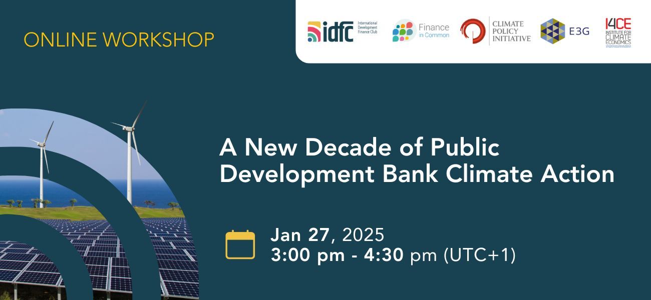 Co-hosts: International Development Finance Club (IDFC), Finance in Common, Climate Policy Initiative (CPI), E3G, Institute for Climate Economics (I4CE)