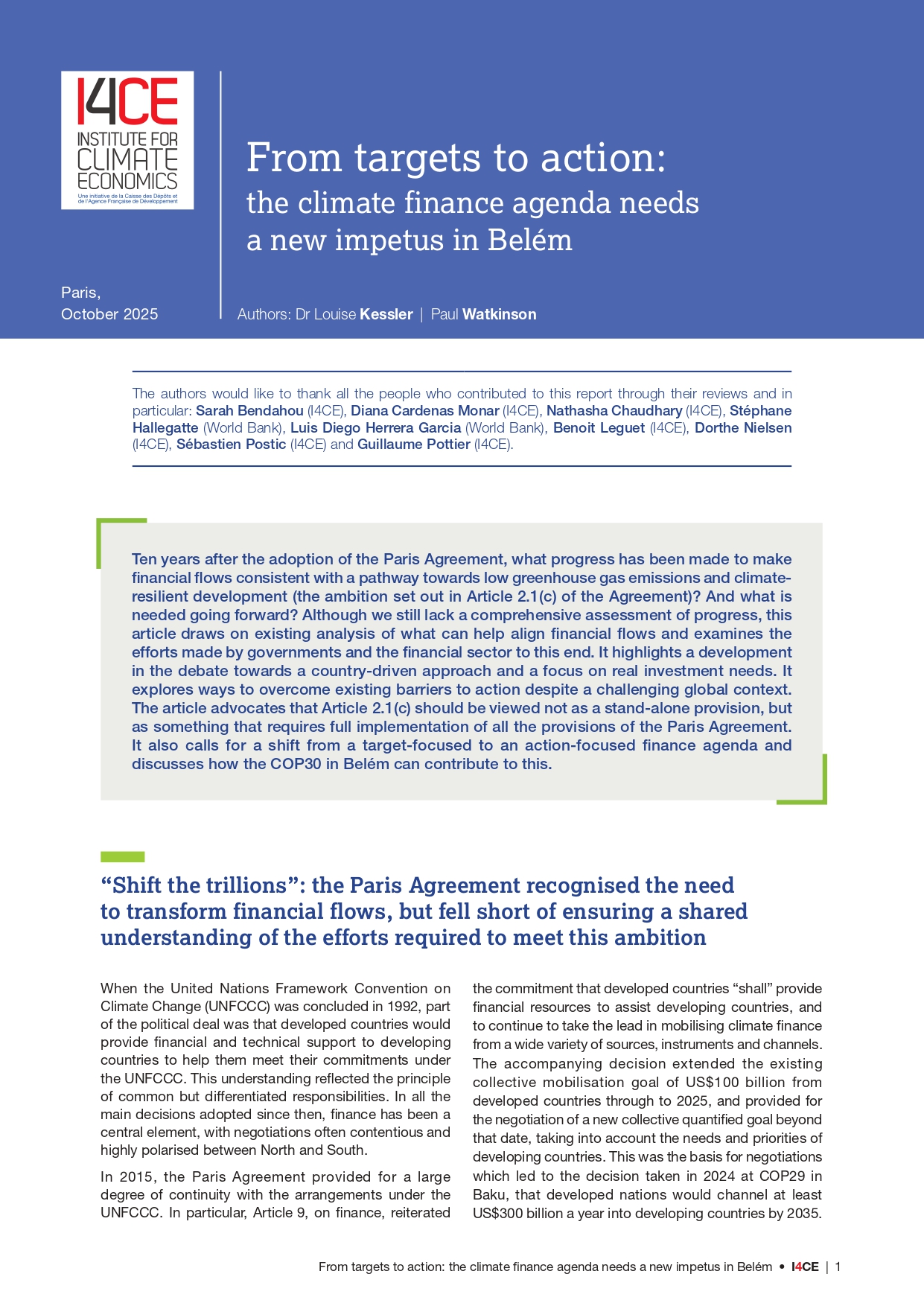 From targets to action: the climate finance agenda needs a new impetus in Belèm