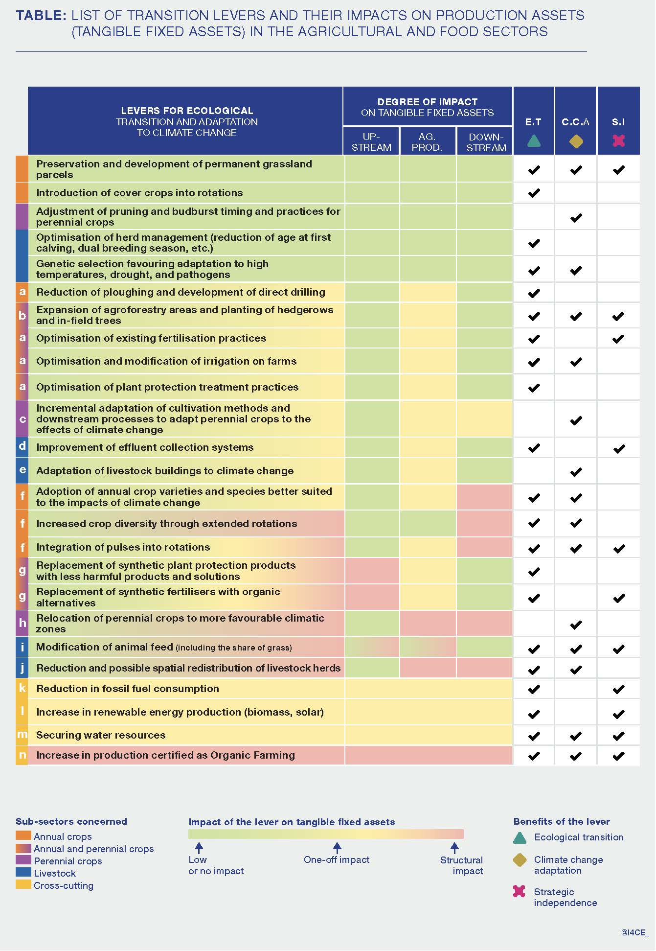 The transition implies one-off investment needs, particularly in agricultural production assets. The total value of the production assets concerned currently amounts to approximately €80 billion. These include: