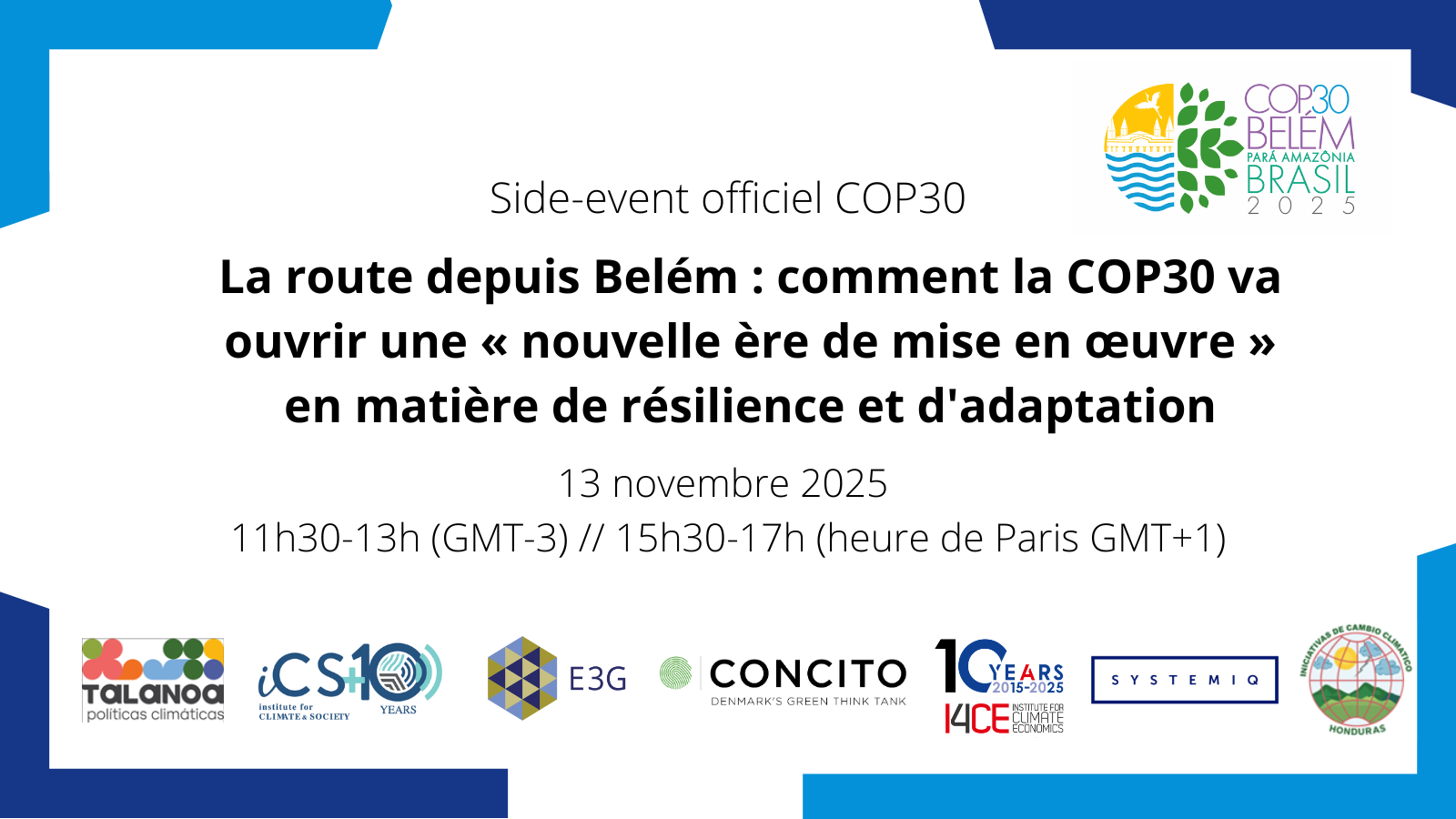 Co-organisateurs : Institute for Climate and Society (iCS), Fundación Nacional de Cambio Climático de Honduras, E3G, CONCITO, Institute for Climate Economics (I4CE), Systemiq.