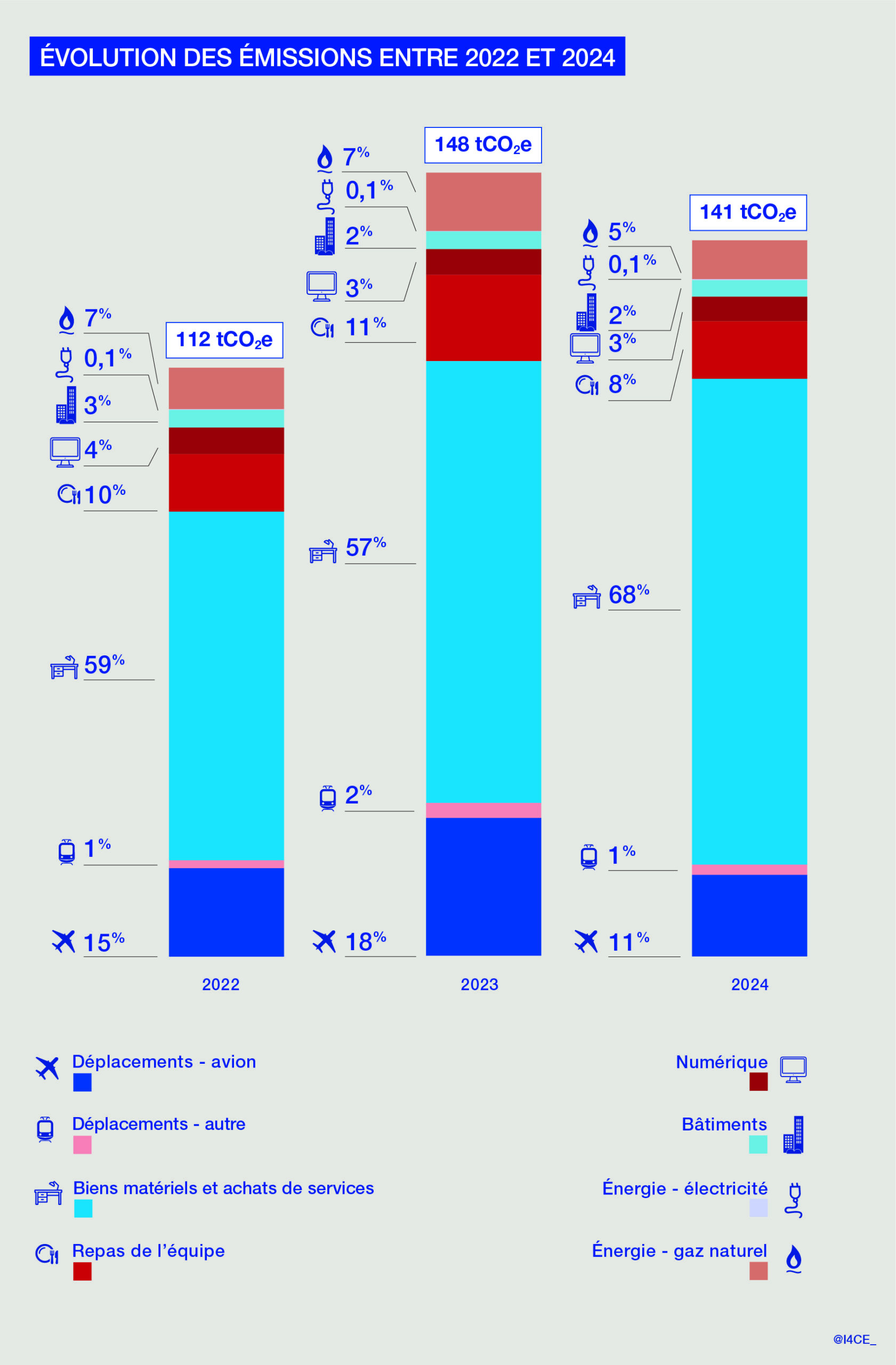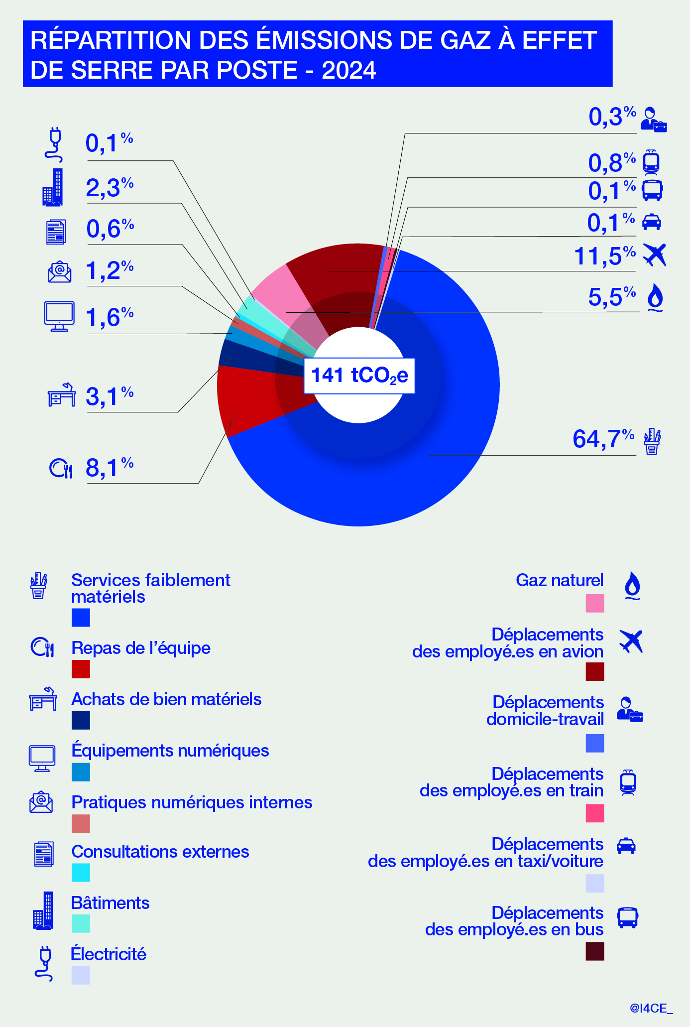 Figure 1 : Répartition des émissions par poste – I4CE 2024